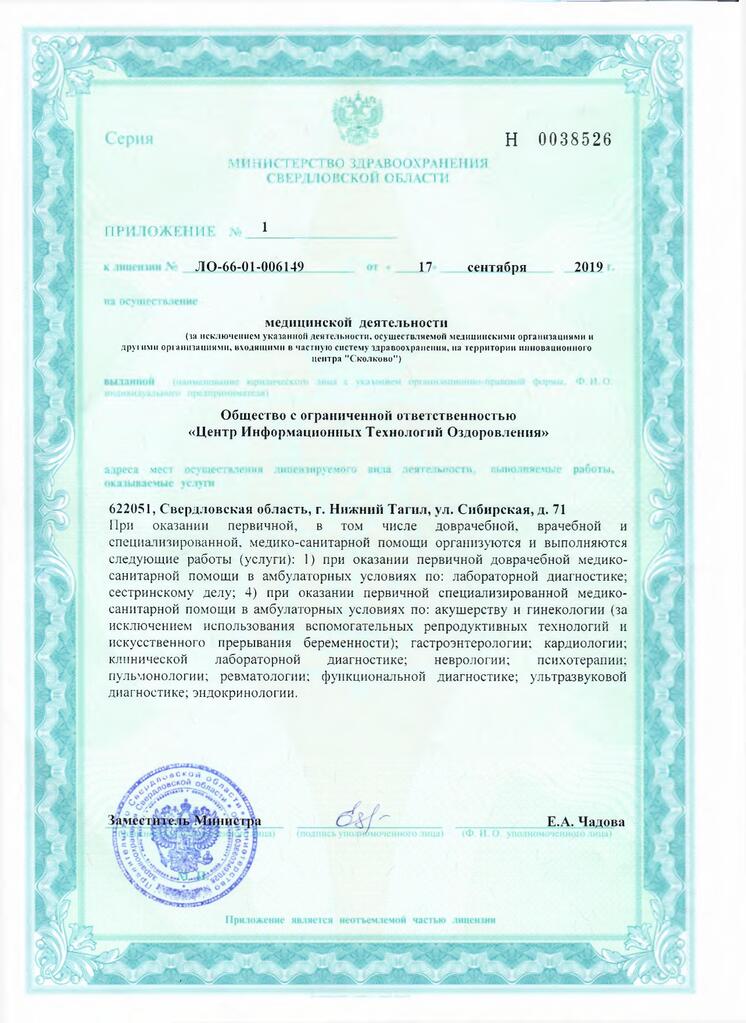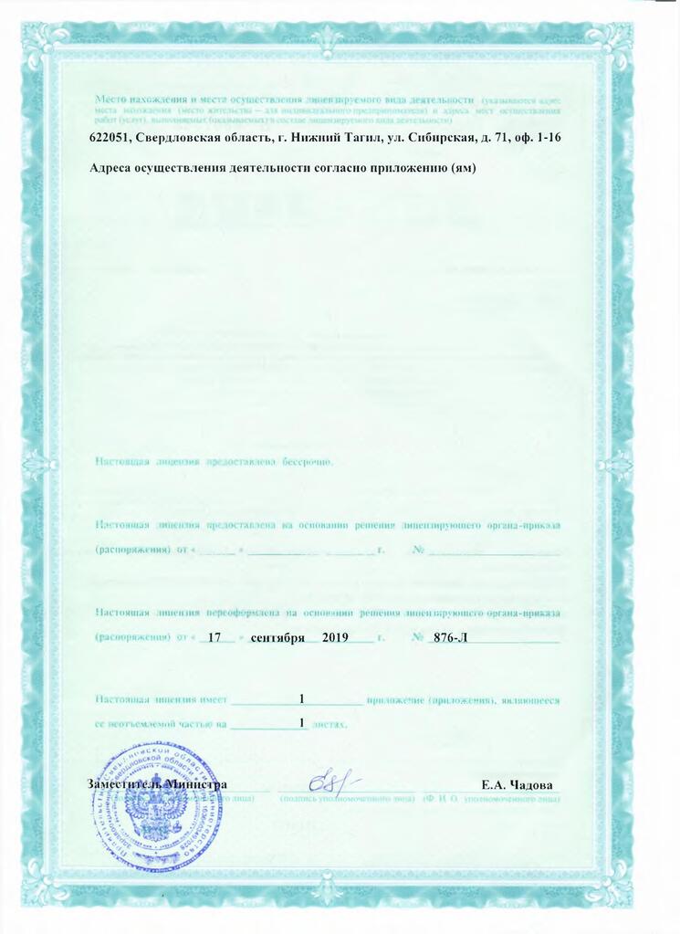 Лицензия № ЛО-66-01-006149 от 17 сентября 2019 года